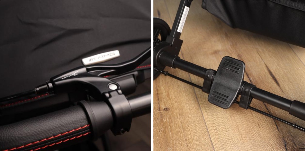 - Hlavná brzda - môžeme ju prirovnať k „ručnej brzde” v aute. Kočík úplne zablokuje na mieste. V drvivej väčšine prípadov sa ovláda nohou a nachádza sa na zadnej náprave kočíka. Ojedinele sa ale môže nachádzať aj na na bočnej strane konštrukcie.