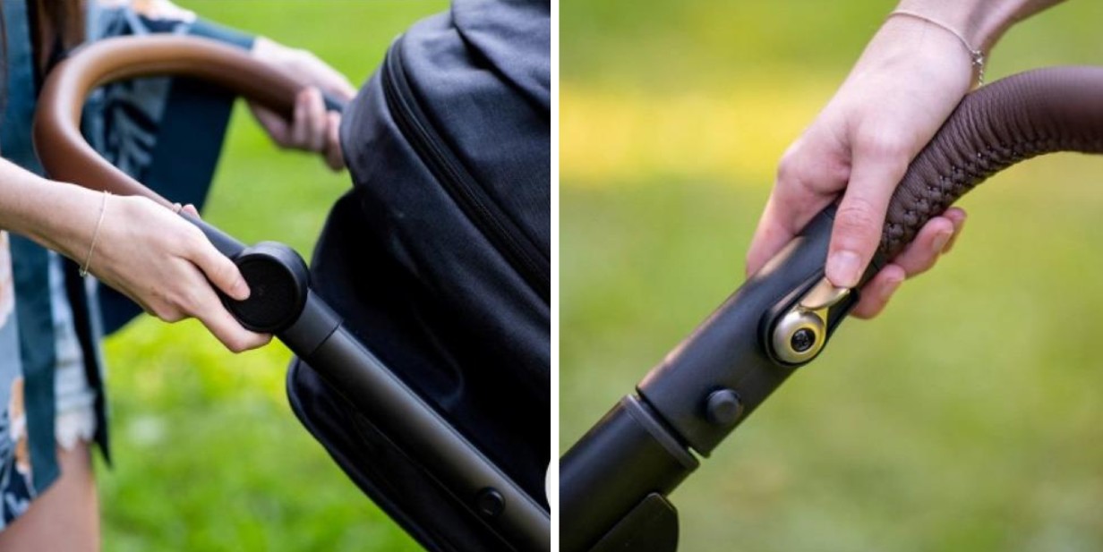 Ďalším typom je nastaviteľná rukoväť. Tú rozdeľujeme na kĺbovú a teleskopickú. Kĺbová rukoväť kočíka sa ovláda tlačidlami, teleskopická sa výškovo nastaví stlačením tlačidla a zároveň potiahnutím rukoväte smerom k sebe. U teleskopickej sa teda nenastavuje iba výška, ale aj vzdialenosť od kočíka. Tento typ rukoväte je vhodný najmä pre vyšších rodičov, aby im neprekážala zadná os kolies.
