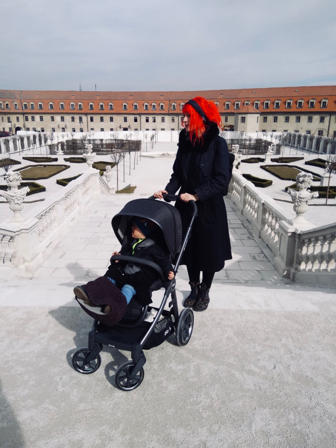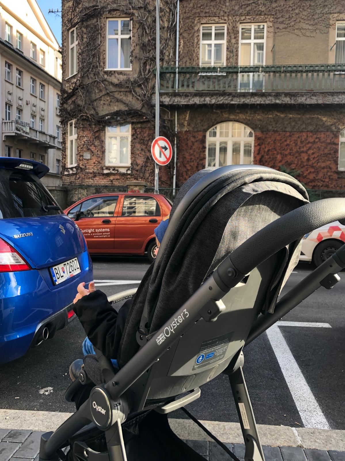 Prejdime však k samotnému športovému kočíku, ktorý budeš používať najdlhšie a jeho funkcie sú, logicky, najprepracovanejšie. Jeho váha - 12 kilogramov - nie je nízka, ale ani extrémne vysoká. Pravdupovediac, presne zodpovedá tomu, ako kočík pôsobí a čo dokáže. Ak však plánuješ kočík veľmi často prenášať, váha je, samozrejme, citeľná. Pokiaľ ide len o naloženie a vyloženie, toto zvládnu aj drobnejšie mamičky s prehľadom, ale dlhšiemu noseniu alebo každodennému vynášaniu na ôsme poschodie by som sa skôr vyhla. Pri vození však váhu nepocítiš - jazdné vlastnosti Oyster 3 sú naozaj veľmi dobré. Ani v prípade, že je naložený ťažším dieťatkom, nie je kočík ťažký na manévrovanie - ťažisko je umiestnené vhodne. Zvládneš to aj jednou rukou, aj na hrboľatom povrchu. Vykladanie na obrubníky takisto nie je problém - pri dieťatku v protismere som si ani neuvedomila, že kočík dvíham. Pri smerovaní vpred som si uvedomila, že to ťažké nie je, ale je dôležité mať rúčku vo vhodnej výške, teda nie privysoko. S príliš vyvýšenou rukoväťou bolo vykladanie náročnejšie. Dvíhanie na obrubník je pritom jedna z vecí, ktoré sú pre mňa extrémne dôležité. V okolí máme množstvo obrubníkov a kočíky, u ktorých to ide ťažko, mením ako ponožky (je totiž strašná otrava, bojovať zakaždým s dvíhaním). Ďalšou prednosťou kočíka je fakt, že aj keď som vysoká, o kočík som pri chôdzi nezakopávala.