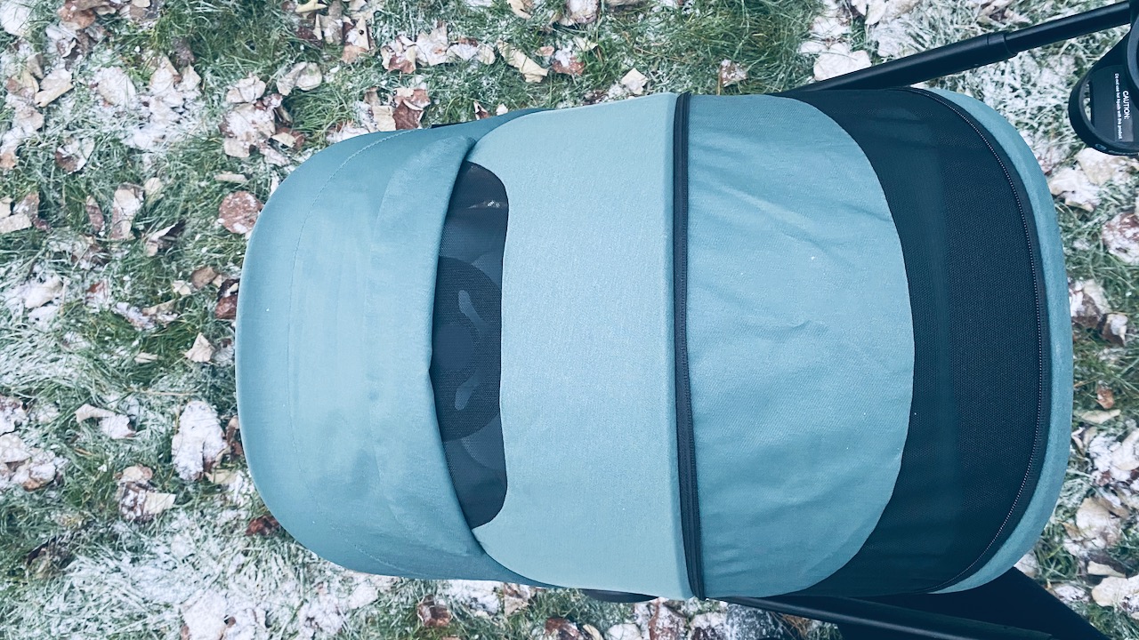 Na striešku mám reálne dva body, ktoré by som vytkla - ale možno ani nie ja, skôr mamičky, čo si na práve týchto dvoch vlastnostiach dávajú viac záležať. Prvým je dĺžka v ľahu - je OK - no mohla by byť dlhšia, veď to poznáme… Myslím, že mamičky majú radi skôr striešky, ktoré zakryjú čo možno najväčšiu plochu dieťatka, keď spí. Tu strieška pekne zakryje akurát tak hlávku a možno ramená. Je to bežná situácia pri kočíkoch s otočným sedadlom, kde sa strieška hýbe spolu s opierkou chrbta. Mojou druhou výčitkou - aj keď mne pravdupovediac táto vec nejaké stresy nerobí - je, že roz-zipsovateľná predlžovacia časť je 90% sieťka. A tá nejde zakryť, jedine teda jej spätným zazipsovaním a teda skrátením striešky na základnú dĺžku. Na leto super, vetranie, ale mamičky, čo nemajú dobrý fusak, alebo sa boja “prefukovania kočíka” v chlade, vetre, proste nebudú nadšené. Ja radím hlavne mať dobrý fusak, a nebude to nejaký zásadnejší problém - je každopádne dobré o tom vedieť vopred.