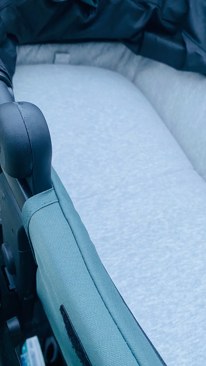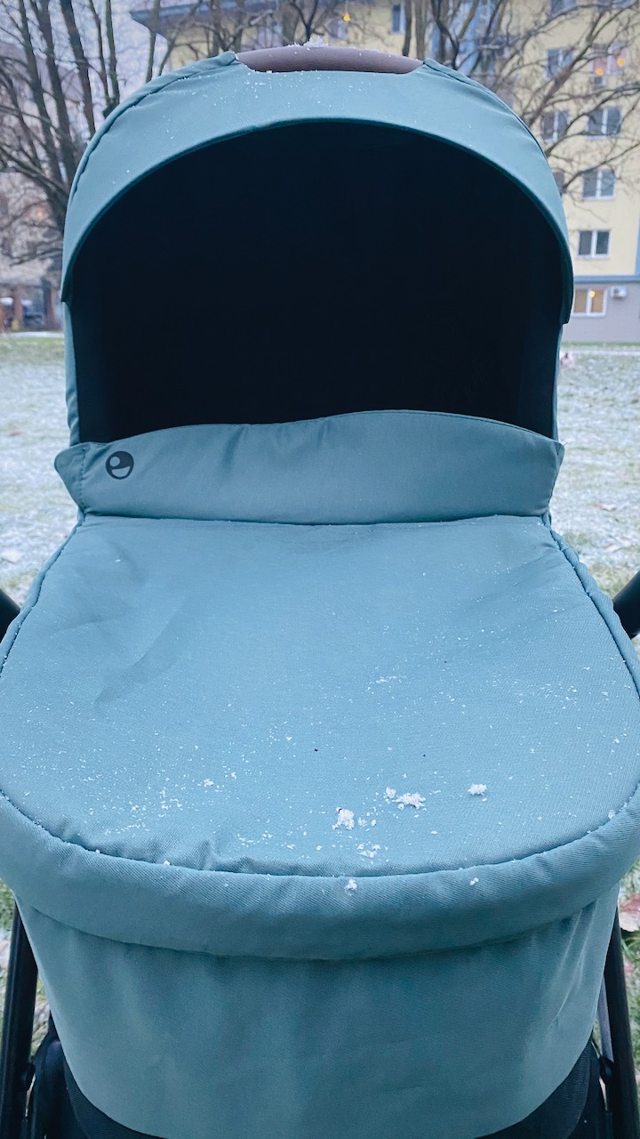 Vanička sa naklikáva priamo na konštrukciu, nepotrebuješ žiadne adaptéry. Nie je nijak extra vysoko, ale nie je ani nízko. Za mňa je tak akurát, a to som z tých vyšších (176 cm). Vybavená je pomerne hrubým, pohodlným matracom, nánožníkom so zvýšeným okrajom a strieškou s tromi polohami: úplne sklopená, čiastočne sklopená, a úplne zatiahnutá (reguluje sa to vnútornými tlačidlami). Typicky pre EW je, tak ako aj športové sedenie, vybavený sklopným šiltom. Ochrana je dostatočná, aj keď ten zvýšený nánožník za mňa môže byť do budúcna ešte trošku vyšší 😉