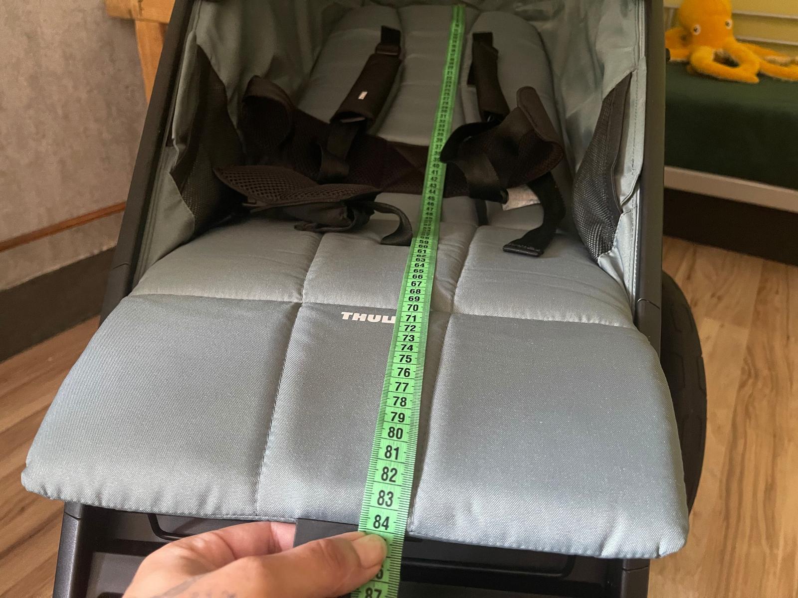 Thule Urban Glide 3 má neotočné priemerne priestanné nekorýtkové športové sedadlo. Svedčí o tom jeho vnútorná šírka sedacej časti (31 cm) a dĺžka chrbtovej opierky (50 cm).