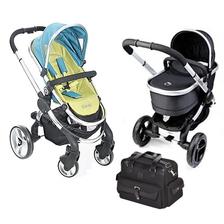 Peach - akciový set obsahuje športový kočík v tyrkysovozelenej farbe, hlbokú vaničku Jogger Black, tašku Black, slnečník Black Magic, adaptér na autosedačku Maxi Cosi a podložku tyrkys Pear.