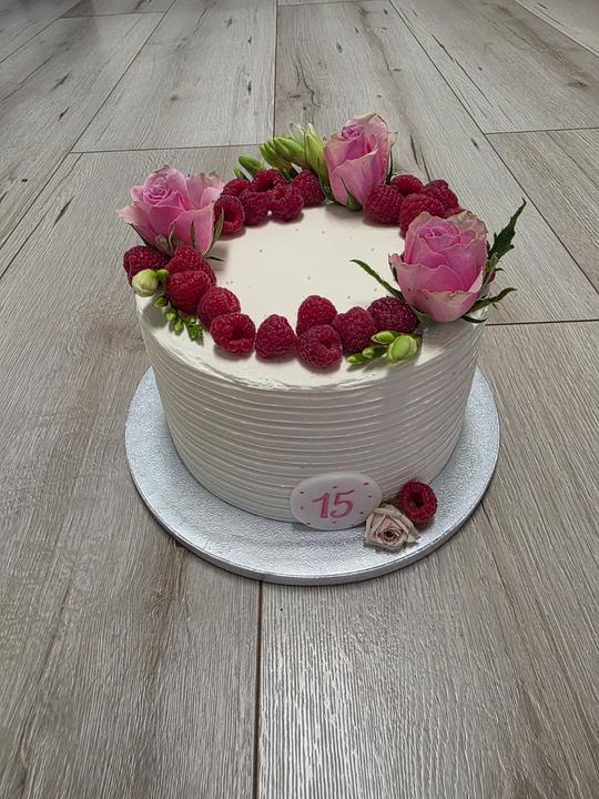 2800g, vanilkový korpus, biela čokoláda s malinami a liatym karamelom