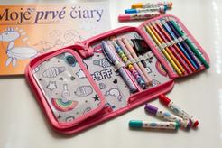 Oceňujem aj spracovanie. Polstrovaný obal chráni obsah pred poškodením, zipsy sú pevné a ľahko sa otvárajú – zvládne ich aj malé dieťa bez boja. A detail, ktorý nás potešil, je podšívka s obrázkami na vyfarbenie. Je to drobnosť, ale dieťa si tak peračník prispôsobí a urobí z neho „svoj“.