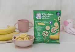 A presne to GERBER chrumkavé kolieska s banánom spĺňajú. Majú príjemnú, prirodzene nasladlú chuť zrelých banánov (priznávam, občas si koliesko „ukradnem“ aj ja 😊) a obsahujú len prírodné cukry. Vďaka svojmu tvaru sa dcérke ľahko držia a otáčajú v malých ručičkách, čo ju veľmi baví. Sú pevnejšie, nerozmočia sa hneď, a preto si nimi môže poškrabkať ďasná, keď ju trápia nové zúbky.
