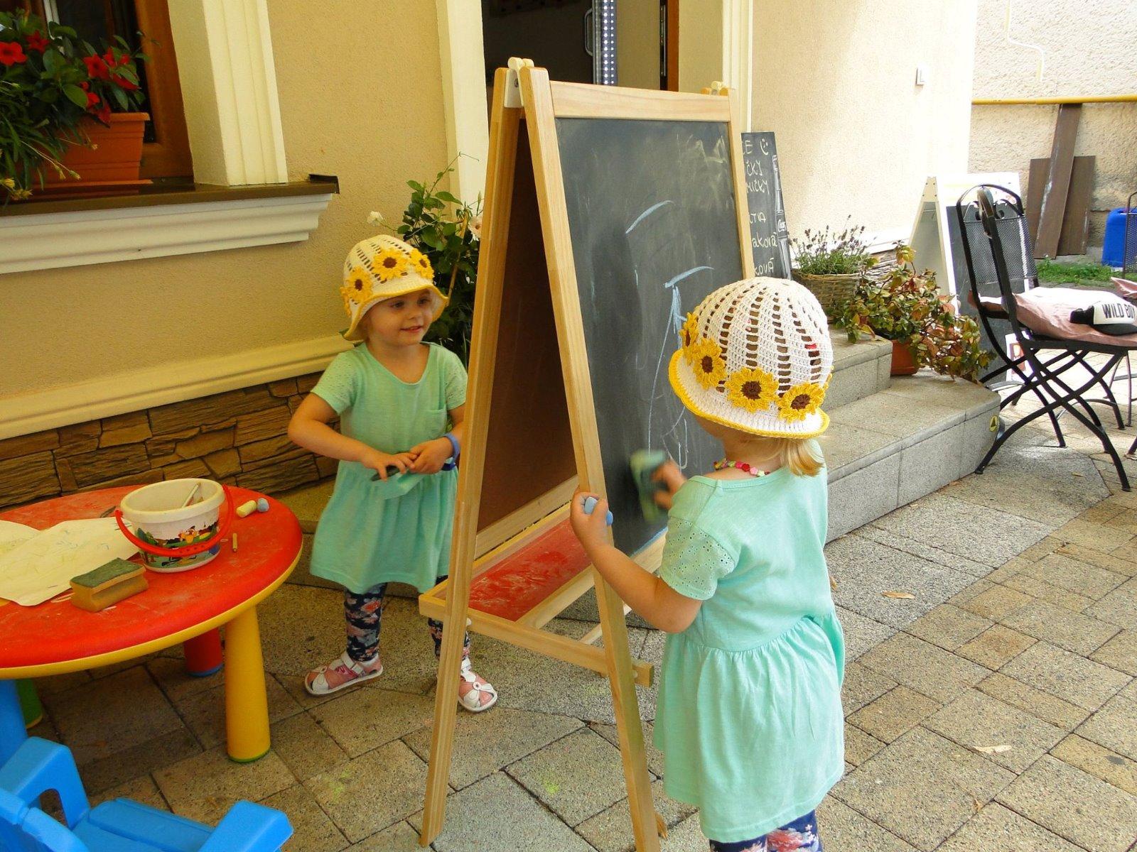 Dobry den mam dcerku ktora bude mat teraz 2r. Rada kresli pastelkami, kriedou doma aj von po chodniku no a raz sme skusali prstove farbicky ked mala meniny. Aj s kamaratmi sa do toho pustili hlava nehlava 😍 keby mohla tak by takto malovala kazdy den. Teraz bude mat narodeniny tak ideme zas daco vymysliet.