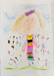 Moja dcérka má 5 rokov a rada maľuje, kreslí, tvorí, lepí, kombinuje, vytvára koláže, kabelky z papiera a iné darčeky pre svojich blízkych.Používa všetky farby. Svoje predstavy a zážitky výtvarne vyjadruje najradšej kreslením. Jej veľkou obľubou je kreslenie rozprávkových hrdinov. Prikladám jeden z nich.