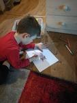 Moj Alexik najprv nerad kreslil ale ked zistil ze kreslenie je fajn tak vsade a všetkým tvrdi ze bude umelec 🙂 jeho oblubena farba je cervena,modra a zelena...najradsej si kresli v kuchyni pri stole,ja varim a moj umelec tvori....kresli rad vsetko co mu napadne no medzi oblubene postavy patria ninja korytnacky a najradsej kresli farbickami musia byt ostruhane a musi ich byt vela kedze sam nevie co mu v dannej chvili napadne a aj rad pise kedze je predskolak...rad tvori aj domceky a vystavy z lega,och to patri medzi jeho top hracky ...Alexik.ma.6rokov,ma rad ked je vsetko farebne