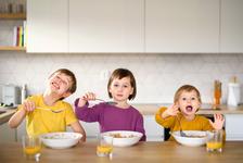 To, že raňajky sú základom dňa, sa snažím učiť svojich troch nezbedníkov odmala. Máme školopovinného 8 ročného Lukáška a dve škôlkarky Katku (5,5) a Alžbetku (3). Počas týždňa sú raňajky dosť hektické, ale snažíme sa jesť všetci spoločne. Práve cereálie s mliečkom si obľúbili všetci traja asi polroka dozadu. Jedli by ich každý deň, ale snažíme sa kombinovať s inými raňajkovými alternatívami. Keďže veľký brat je veľký výmyselník, mladšie sestry od neho často odkukajú aj to, čo by nemali a potom je u nás tak veselo ako na fotke🙂 A ako bonus, na zvyšné mliečko si vždy zoberú slamky a sŕkajú ho priamo z taniera, čiže naše raňajkovanie má okrem chuťovej zložky aj tú zvukovú 😀
