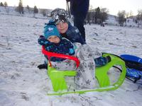 To, ze je Sarka doma ma aj vyhody, lebo Samko (11mes) sa nemusi len vozit v kociku, ale zauca ho do tajov smykania sa po snehu na roznych prostriedkoch 😀