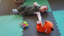 Moja slečna Nicole bude mať 9 mesiacov v marci 2021 a je to živel. Položím ju na bruško, a v podstate sa zahrá sama. Ale robí to tak roztomilo agresívne že všetko musí odtrieskat o zem 🤣 až sa jej bojím dat nejakú hračku. Vyobracia to ako mačka klbko ci je to jednoduchá drevená hračka alebo spotrebič pre deti od Dráčika ktorý by jej mal patriť keď dorastie. Verím že dovtedy už bude rozbitý 😉 a miluje zatiaľ všetko pchať do pusy a úplne najviac ju zaujímajú hračky jej 3rocneho bračeka. Takže pred spaním "skladáme" puzzle a autíčka do pusy.