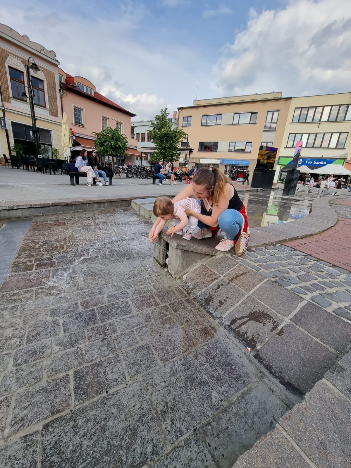 Pri fontáne na terase s pivom alebo drinkom a priateľmi