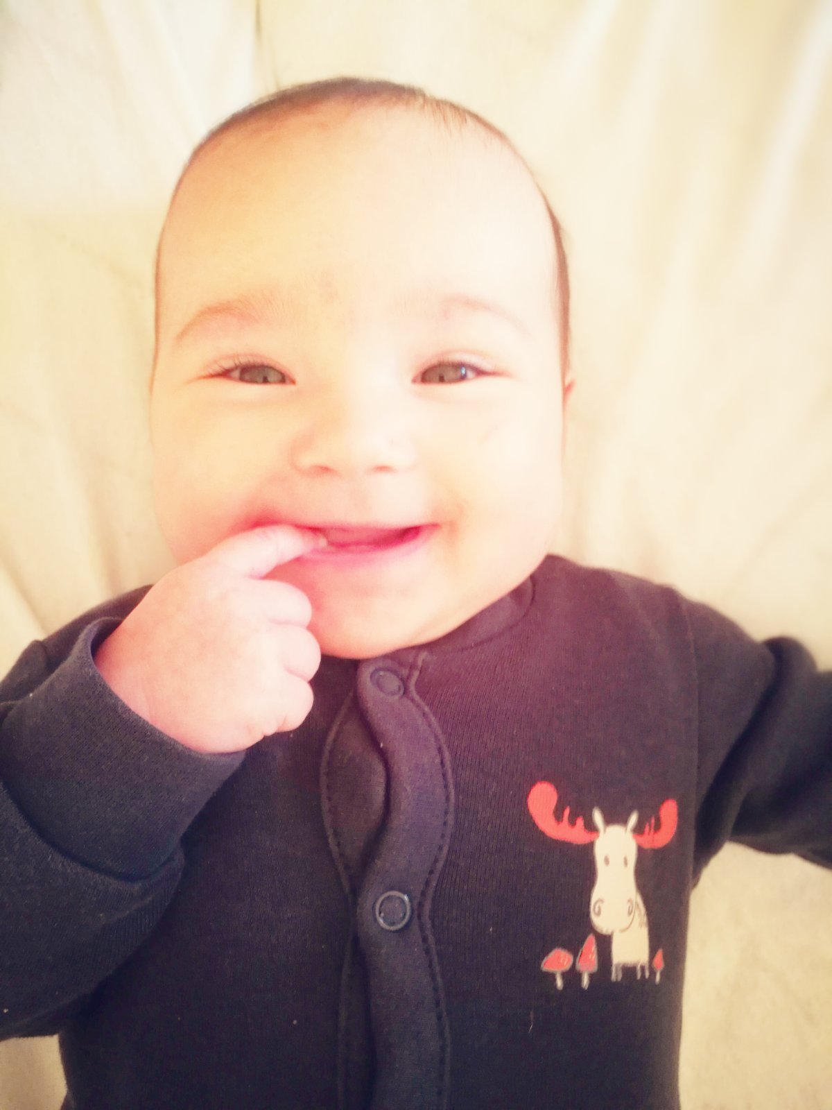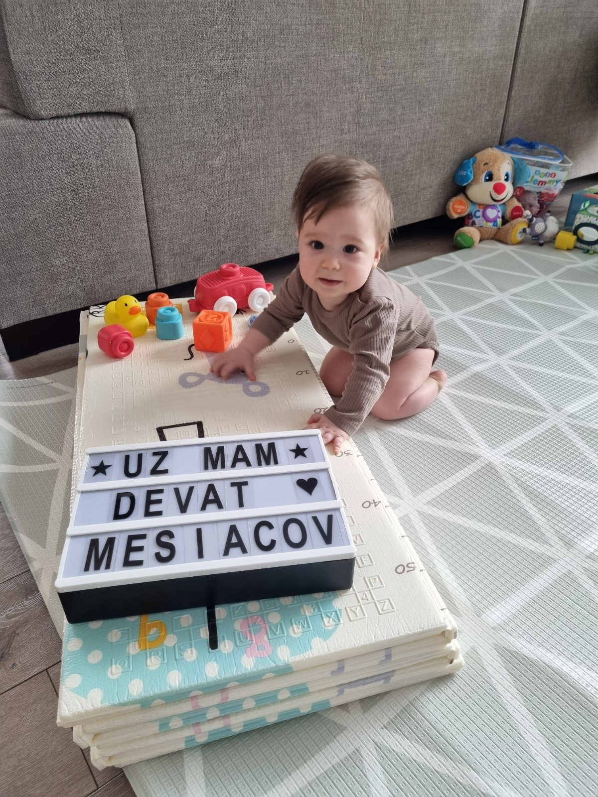 Náš chlapček Matko má 9 mesiacov je energický a skoro stale usmiaty a šťastný, bohužiaľ sme hned po porode boli odluceni, začiatky boli ťažké a boli sme veľa v nemocnici. Preto bol môj krpec málo dojceny. A od 3. Mesiaca je iba na UM- Nutrilon AR, keďže grckal.