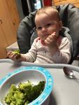 Momentálne u nás frčí všetko čo sa da chytiť do ruky a môže jesť sám 😁 kapsičky, chrumky, brokolica, zemiak, chlebík a avokádo. Mama (ja), sa medzitým ako sa dieťa "zábava" jedlom, snaží aspoň niečo lyžičkou nenápadne dat do úst, ale dieťa sa vrhne aj po lyžičke a boj začína 🤣. Jedlo všade ale 🤷♀️