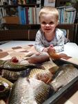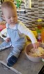 Moje chlapča má teraz na konci mesiaca 1 rok, je to taký guľko-bombuľko, pri svojich rovesníkoch vyzerá, akoby si ich mohol dať na raňajky 😂 ale paradoxne nezje len tak hocičo, najradšej si dáva jedlo do úst sám, takže u nás letia chrumky, nakrájané ovocie, chlebík, ale aj kapsičky - tie mu vždy vyčaria úsmev na tvári 🙂 skúšali sme už aj kupované príkrmy a tie paradoxne zožali väčší úspech ako domáce (asi zle varím alebo čo). Tuto na fotke "vyjedá" chladničku na detskej kuchynke, takže čistý labužník 😀