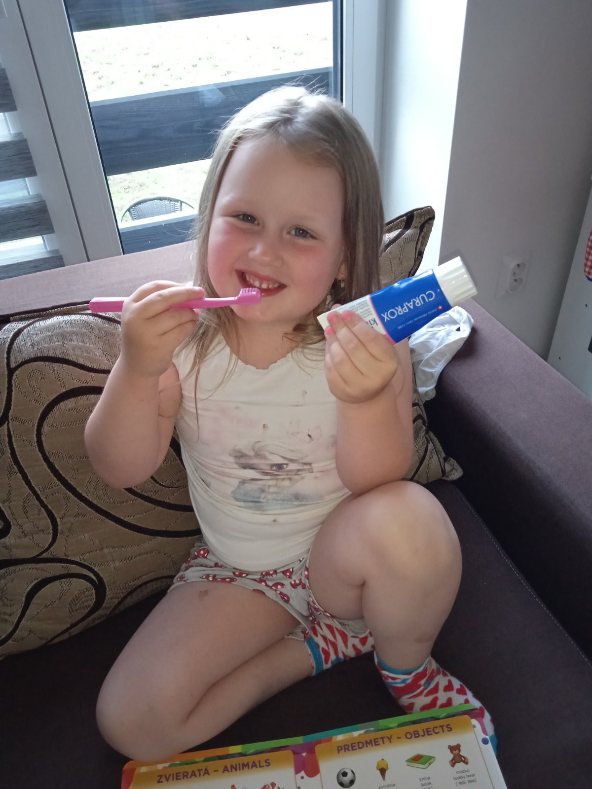 Dcérka si umýva zúbky každé ráno aj večer a ma 4 rôčky😊