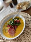 Rada varím tradičné, ale tak isto rada skúšam rôzne zahraničné recepty - gyoza, dim sum, chinkali, quessadilas atď. Máme radi mäsité, ale aj bezmäsité jedlá. Robievam paštéty, pestá, rastlinné mlieka, domácu vegetu, pečený cesnak, cibuľové čatní, sirupy, jablčný ocot, oximel.. a veľa veľa ďalšieho 👌🏼 fotiek mám veľa, ale páči sa mi táto, kde sú krémové šúľance a panenka na hokkaido pyré 🤤 👌🏼