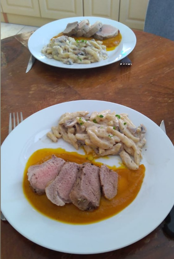 Rada varím tradičné, ale tak isto rada skúšam rôzne zahraničné recepty - gyoza, dim sum, chinkali, quessadilas atď. Máme radi mäsité, ale aj bezmäsité jedlá. Robievam paštéty, pestá, rastlinné mlieka, domácu vegetu, pečený cesnak, cibuľové čatní, sirupy, jablčný ocot, oximel.. a veľa veľa ďalšieho 👌🏼 fotiek mám veľa, ale páči sa mi táto, kde sú krémové šúľance a panenka na hokkaido pyré 🤤 👌🏼
