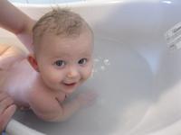 Mam doma 9 mesačného chlapčeka. Pravidelne ho kúpime veľmi rad sa kúpe. Na pustíme mu vaničku do ktorej mu dáme kacicky a hračky s ktorými sa hrá a všade spliecha voda. Potom ho osušíme ešte sa chvíľu po hráme a ide spinkat