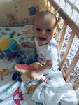 Máme doma čoskoro 4mesacne bábätko chlapčeka....v tomto veku berie do rúčky zvukové hrkalky, v postieľke sa rad díva na krútiaci sa kolotoč a večer zaspáva so svojím plyšovým mackom. Je to veselé dieťatko a takmer vôbec neplače lebo má spokojné bruško a preto sa vždy rád hrá s úsmevom