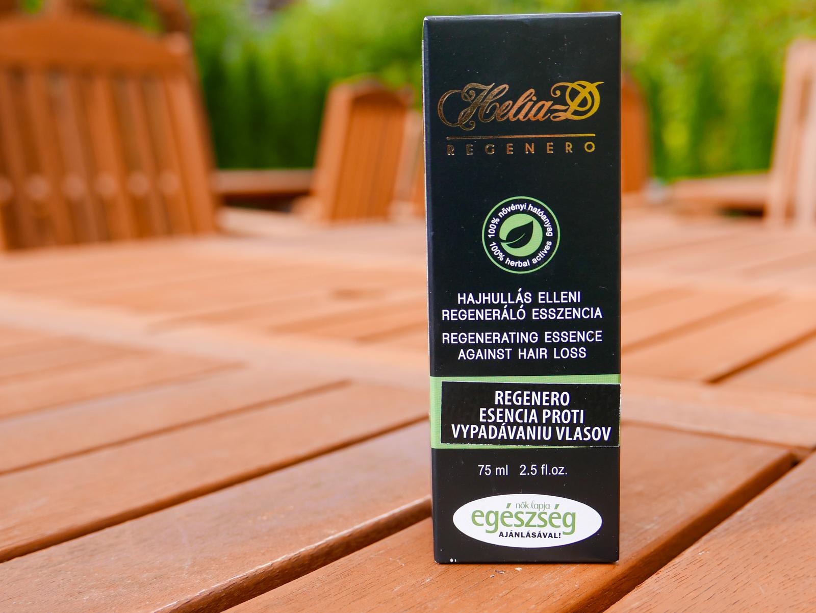 Helia-D Regenero Esencia proti vypadávaniu vlasov - 26 starostlivo vybraných bylín koncentrovaných v alkoholickom roztoku. Účinné zložky prenikajú hlboko do pokožky a pôsobia v mieste účinku. Zvýšený prietok krvi v pokožke spôsobuje intenzívnejšie prenikanie účinných zložiek. Je vhodná pre mužov aj ženy.