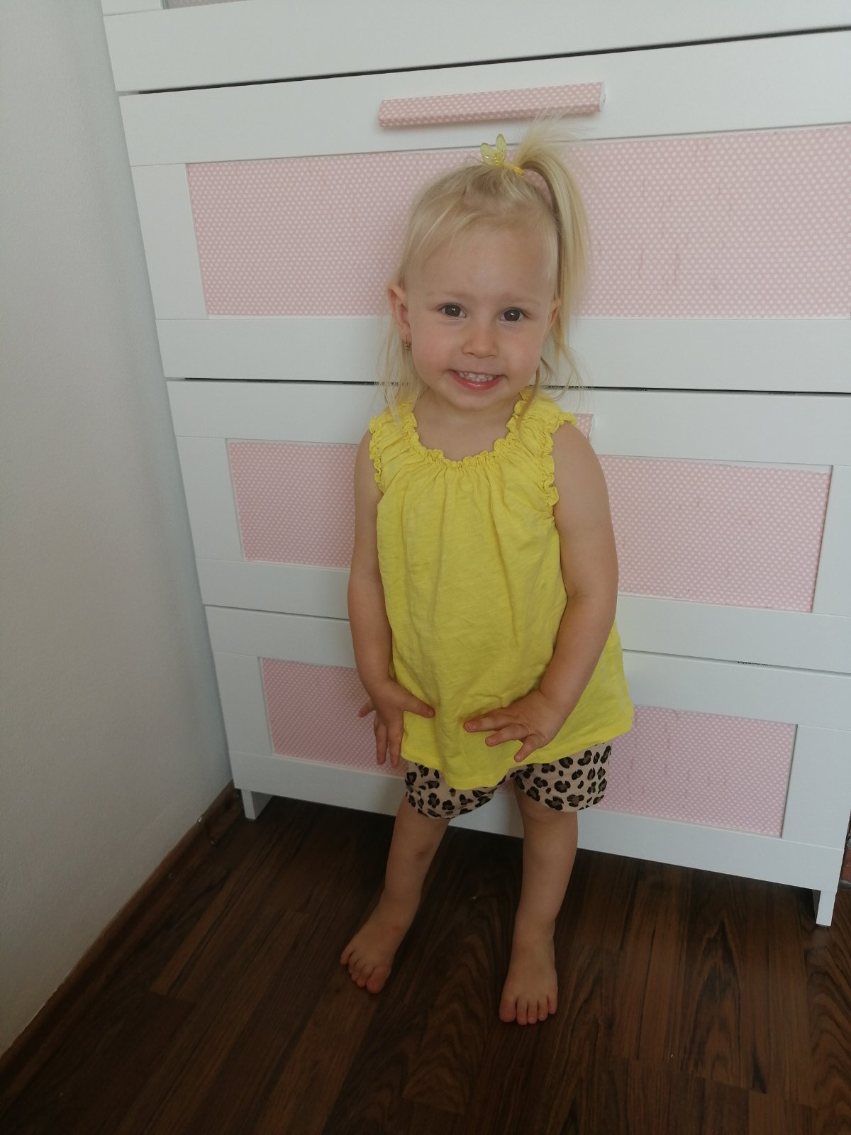 Viktória má 1,5 roka a ako to už býva v tomto období, viac si všíma samú seba v zrkadle a nastavuje všelijaké pózy. Potom tak dopadnú aj naše fotky. Oblečenie nakupujeme teraz často, pretože rýchlo rastie a na svoj vek už nosí veľkosť 92. Z materiálov dávame prednosť predovšetkým bavlne a na vonkajšie oblečenie si potrpíme na funkčnosť vecí. Testovanie by potešilo najmä v tomto prechodnom období z leta na jeseň a zimu.