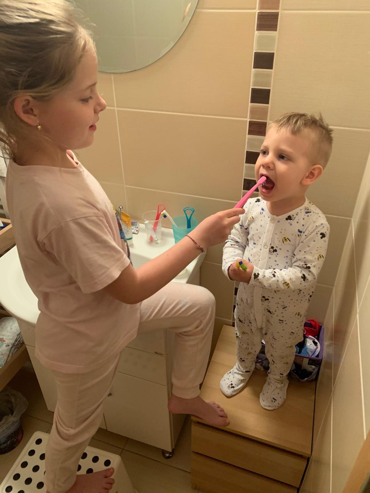 Náš rituál je taký že po voňavom kúpeli dôkladne pokožku osuším, natriem krémikom a šup do pyžamka. Samozrejme očistíme zúbky, učešeme vlásky, očistíme ušká a ostriháme nechtíky. Popritom si spievame a recitujeme a to hlavne pri umývaní zúbkov.