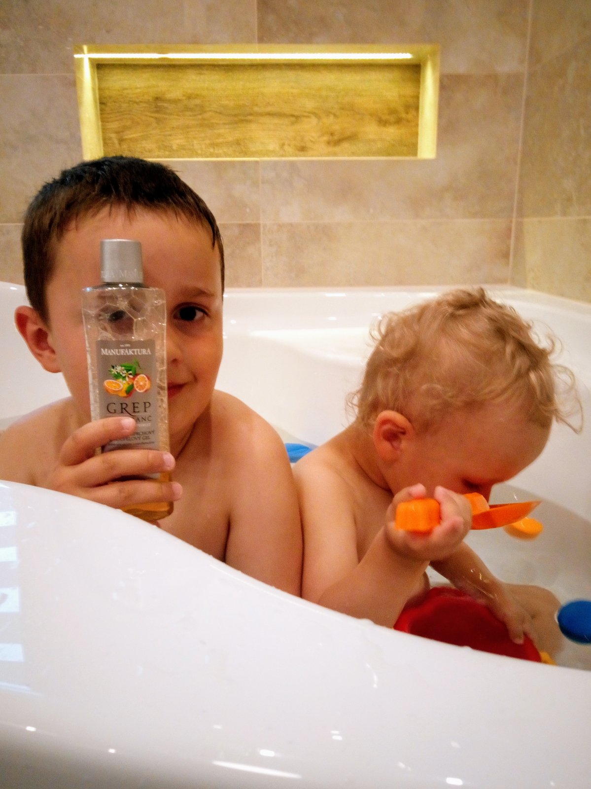 Kúpanie je u nás rituál. Deti ho zbožňujú. Vyberám pre deti, tak ako aj pre seba, prírodnú kozmetiku prevažne slovenských značiek. Manufaktúra patrí už dlho do našej domácnosti, no detskú radu sme zatiaľ neskúšali. Testovanie by bolo pre nás to prave orechové. Jerguš (3,5 r.) a Dorotka (1,5 r.) sa v zásade podieľajú na celej očiste, usilovne si vo vani penia brušká mydlom a velmi sa tešia z peny, ktorú sfukujú z rúk. Po kúpeli už bežia z kúpeľne s olejom v rukách a natŕčajú chrbátiky, aby som ich natrela, pri brušku samozrejme asistujú. Krém na tvár je posledna procedúra pred spaním, deťúchy si navzájom spravia bodky krémom, ktorý im rozotriem a po puse uz len sladké sníčky. 😘🍀