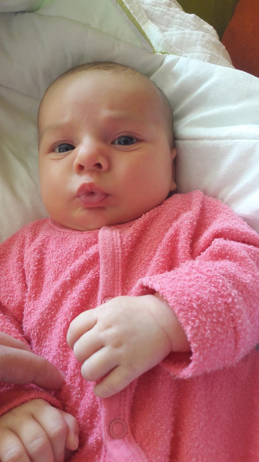 Mladsia dcera ma mesiac, najvyssi cas otestovat dvojky 🙂 Ako by som ju predstavila.. No, vola sa po mne, nausnice ma tiez po mne, je majsterkou v triafaní cohokolvek mimo plienku.. Ma zmysel pre humor a preto obcas pri prebaleni menime hned dve plienky naraz, kedze jednu ocika a do druhej sa aj vykaka.. Och, asi ju premenujem na Monka, on mal jedlo na osobitnych tanieroch, ona ma spracovane jedlo v osobitnych plienkach 🙂 Na obrazku starsia dcera, mladsiu ukazem az na testovacke 🙂 Majte sa..