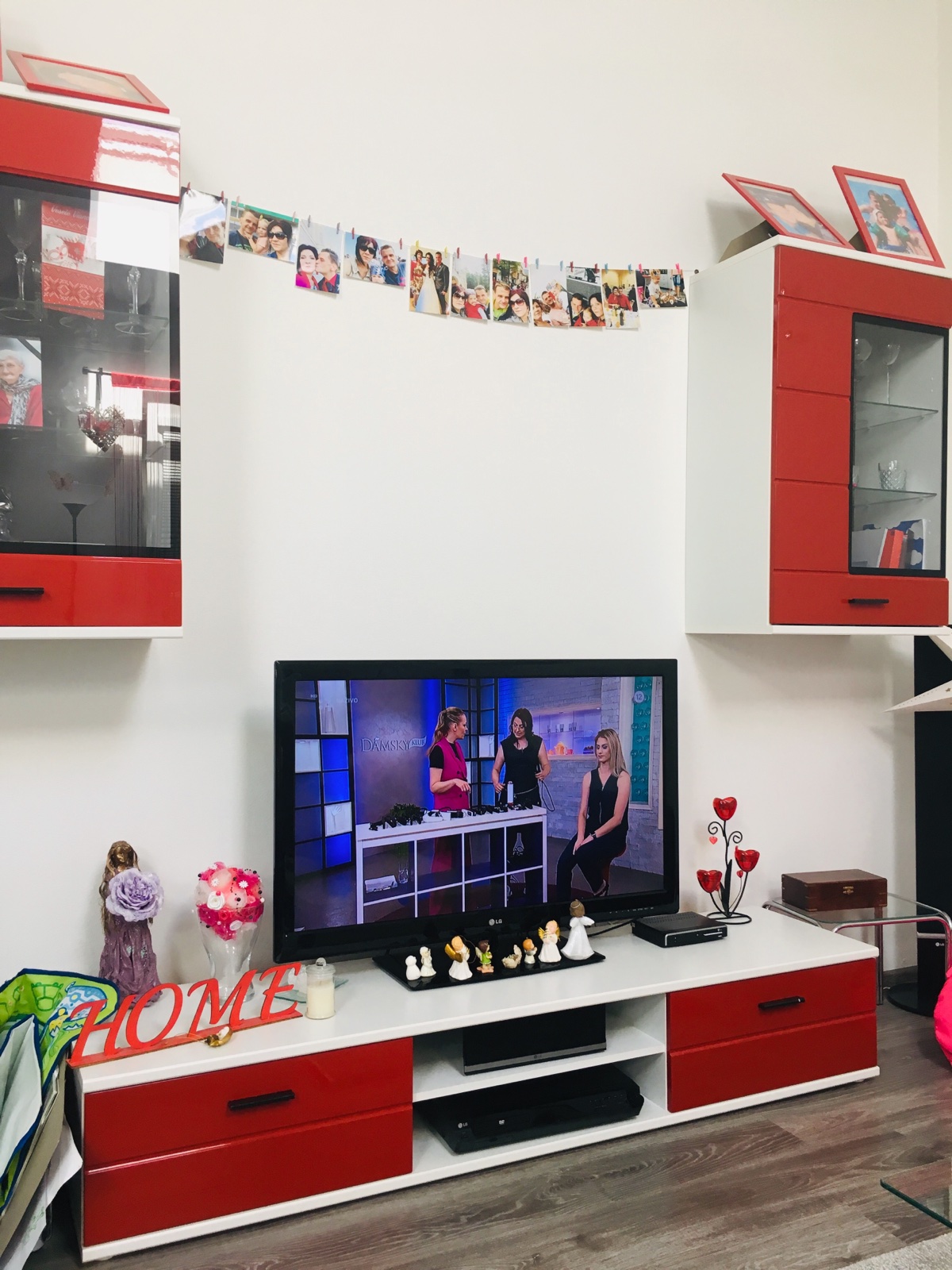 Byvame v domceku iba rok, tak zatial mame takto 😊 na stene tv este nemame pripevnenu, nakolko nikdy nie je cas lebo vacsinou ked sa da vrtat tak je zapnuta😆 od novej tv by som ocakavala dokonaly Obraz a zvuk,moznost vidiet obraz z akehokolvek uhla (ked musim stat pri hrncoch) pripojenie na internet a zopar tych smart inteligentnych veciciek, co v dnesnej dobe tv dokazu😊 byvame v Sebedine, nedaleko B. Bystrice