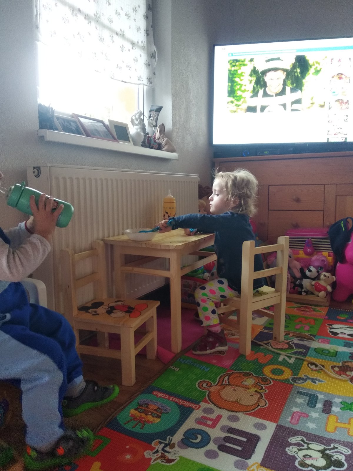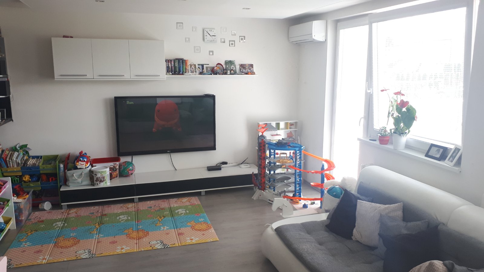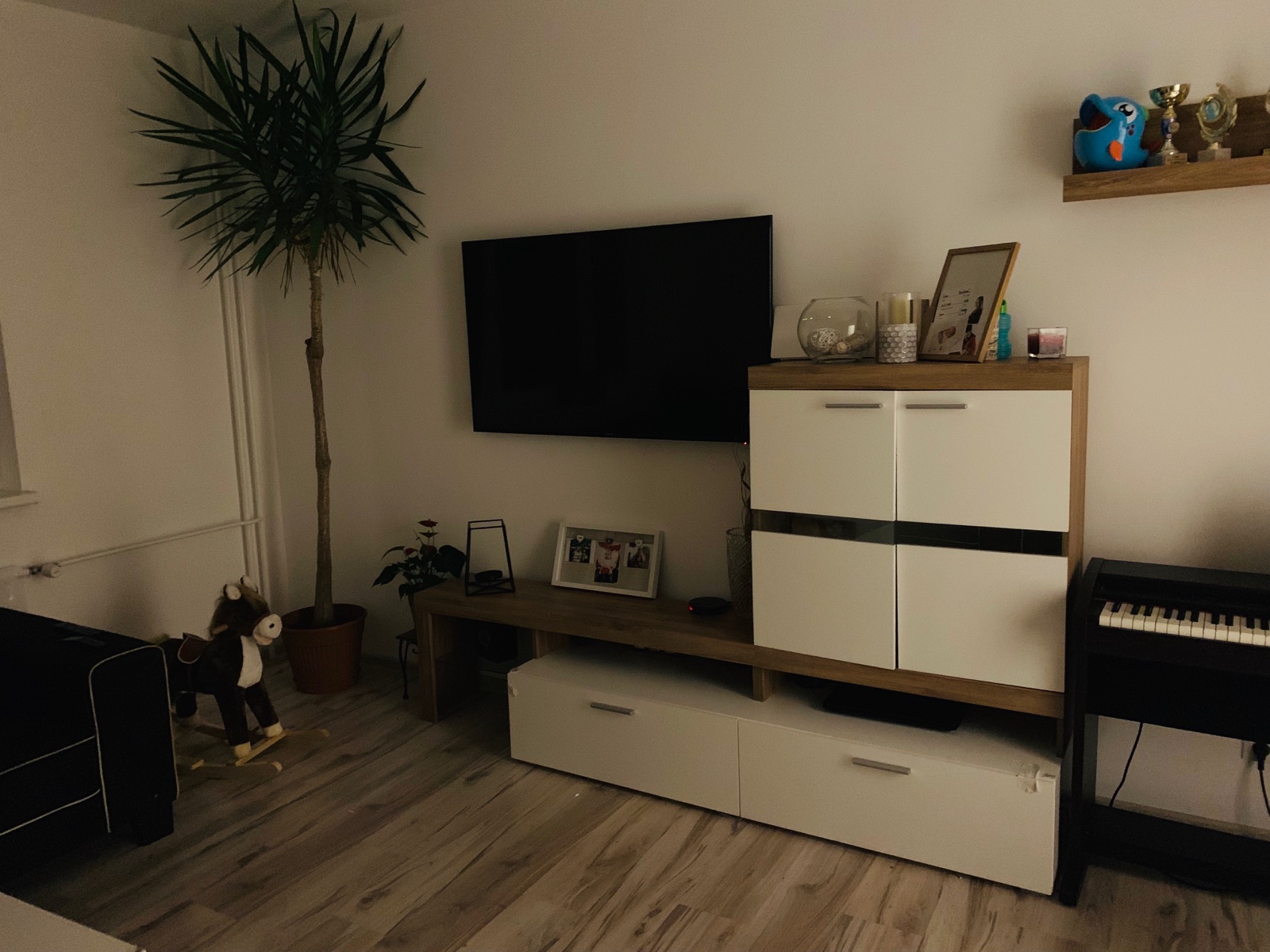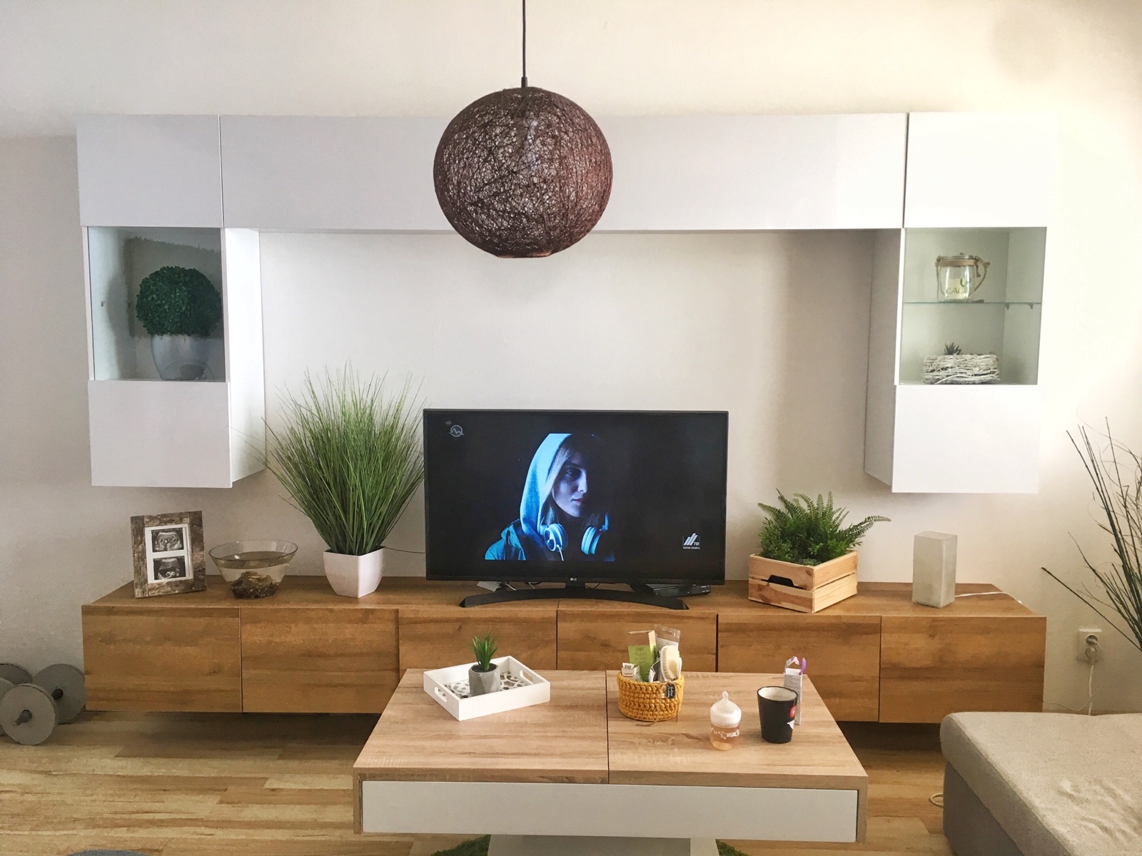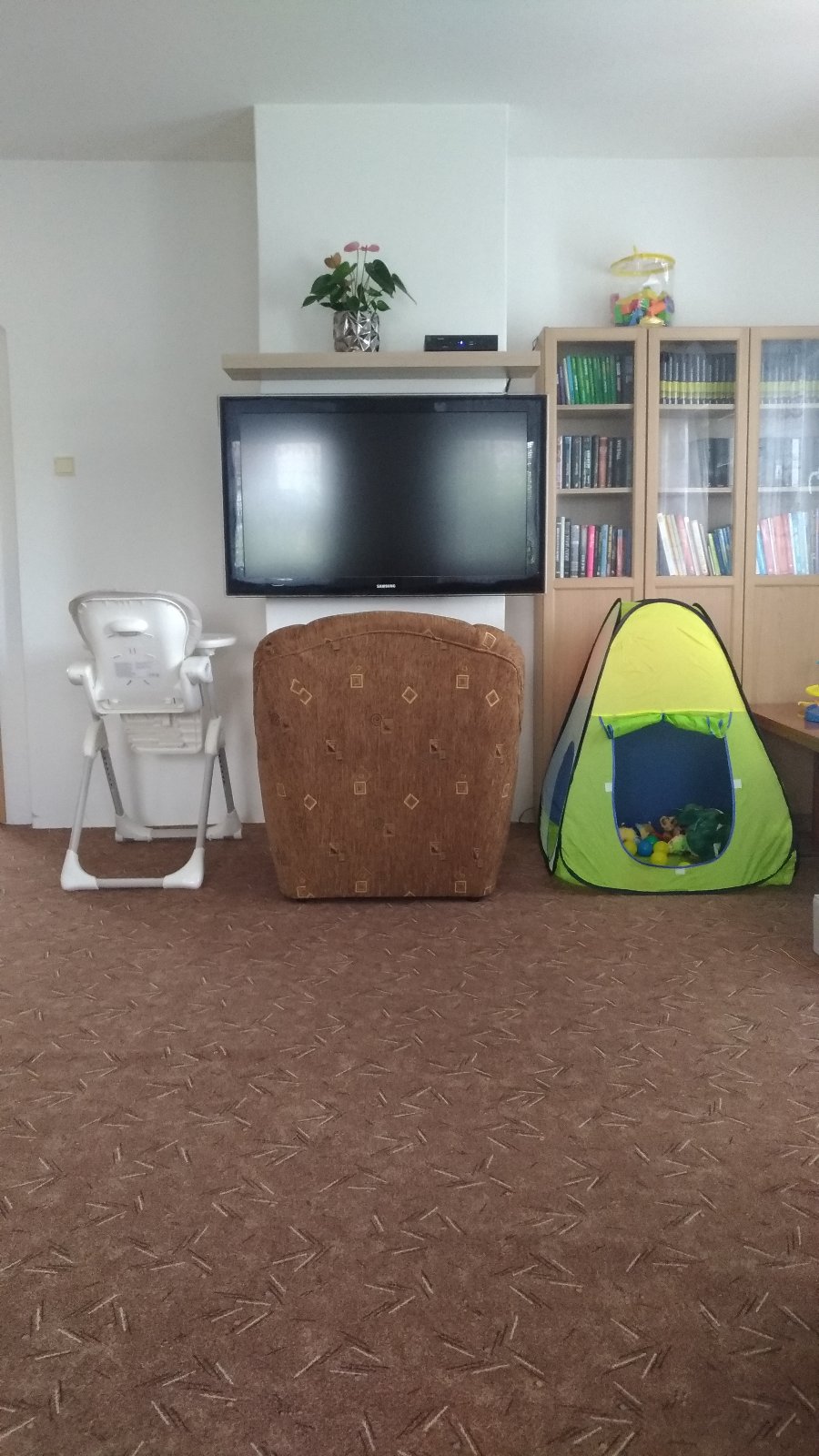 S nasou coskoro uz rocnou slecnou travine v obyvacke najviac casu, pustame si uz rozpravky, najviac ju bavi Krtecek, vecer si zase s ockom radi pozrieme dobry film. Mame malu tv, na stene nevisi, avsak podmienky na zavesenie mame priam idealne, uz len ten velka tv nam chyba 😇