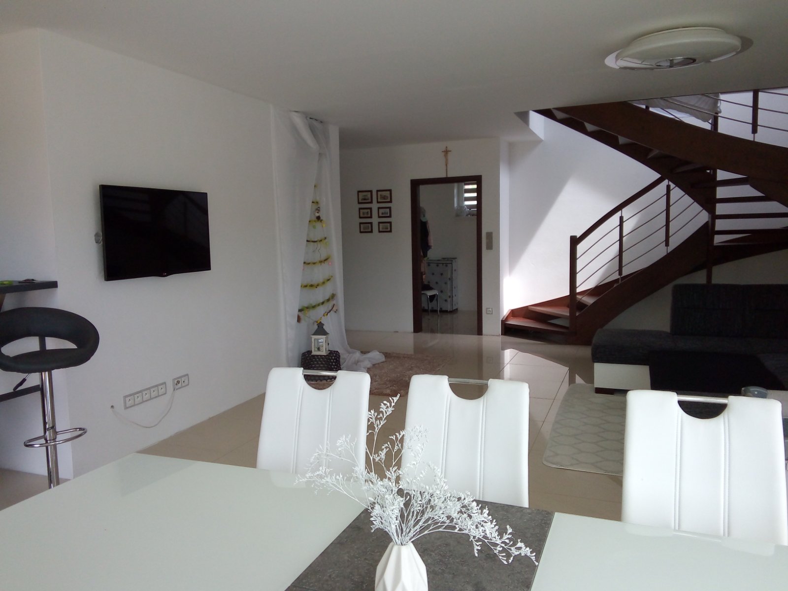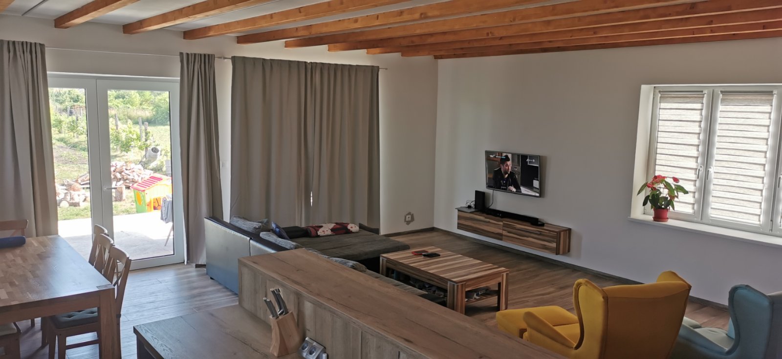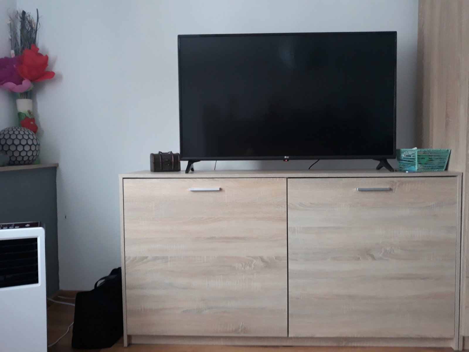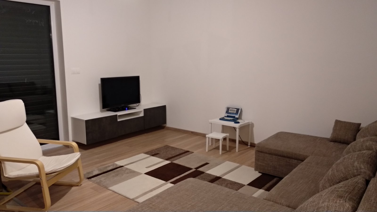 @charlinka111 TV je samozrejme zavesená na stene s nastaviteľným stojanom, aby sme ju mohli využívať aj z kuchyne a terasy 🙂
