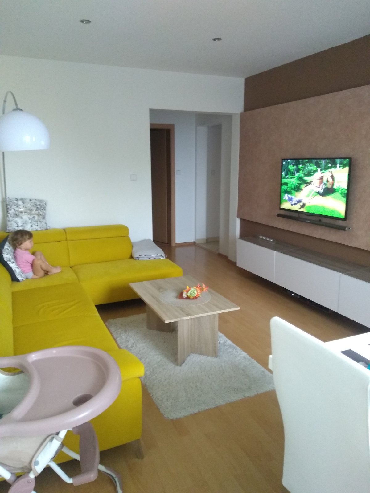 Pripájam fotku obývačky,kde by mohla byť zavesená telka samozrejme nábytok by sme prispôsobili.