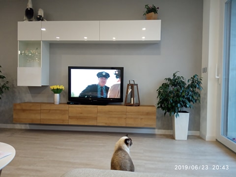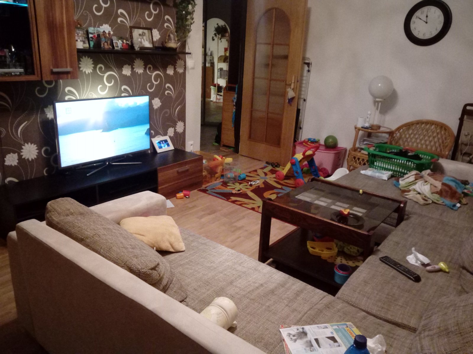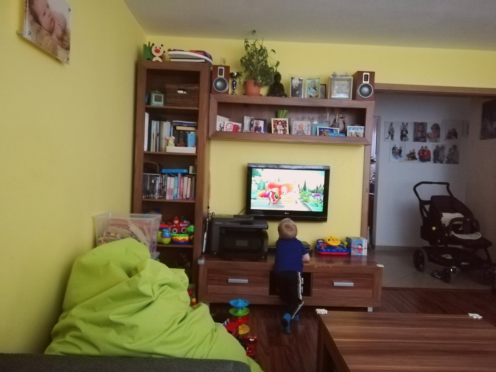 Do poslednej chvile som vahala, ci sa zapojit alebo nie, no zvedavost zvitazila. Momentalne sa nasa rodina nachadza pred volbou, aku TV zaobstarat pre nasu domacnost, nakolko vlastnime este plazmu, ale na jej obhajobu, musim dodat, ze zatial sluzi :D. Samozrejme, ze sme si uz presli aj niekolko kamenných obchodov, aj internetove ponuky, aby bol prehlad. A co ocakavame od nasej TV? Primarne sme si stanovili velkost, ktora by mala byt min. 139cm, ktora bude zavesena, kedze v dome uz mame predpripravene zasuvky na tento sposob upevnenia. Manzel oceni najma ostrost obrazu, prehladne menu ci kvalitny zvuk. Ja ako zena a matka ocenim dizajn, pripojenie na internet, kde bude velmi jednoduche prehrat si film, serial alebo pesnicky prenajmladsiu dceru, ktore teraz musíme prepajat z PC do TV pomocou kabla. A kde sa nachádzame? Nedaleko Prievidze, v dedinke s nazvom Chrenovec-Brusno. Prikladam aj fotografiu nasej obyvacky, kde by mal testovany televizor docasny domov a nas kocur by ho strazil ako aj nas terajsi :D.