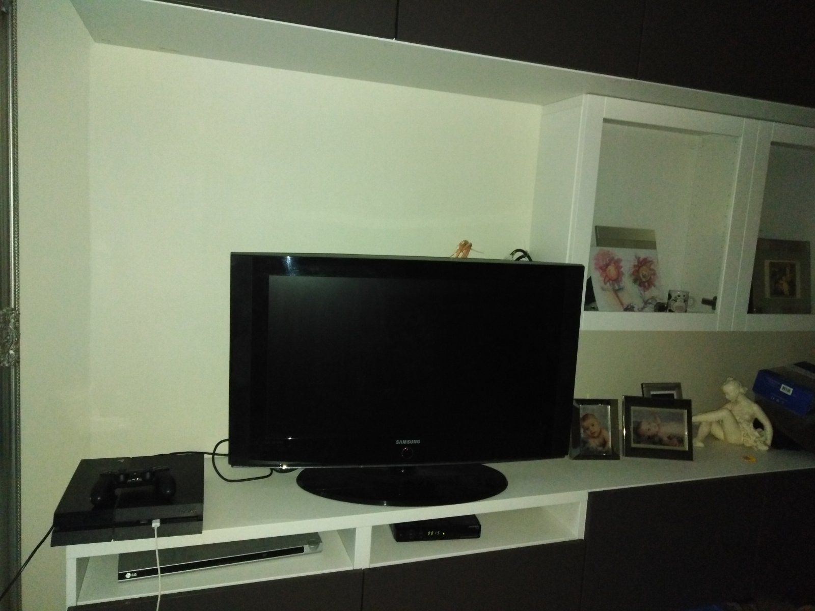 Myslím, že v momentálnom stave si nová telka priam pýta o zavesenie na stenu a v našej priestrannej kuchyňo-jedálňo-obývačke by sa nielen pohodlne zmestila, ale by v nej aj veľmi primerane dizajnovo vynikla.