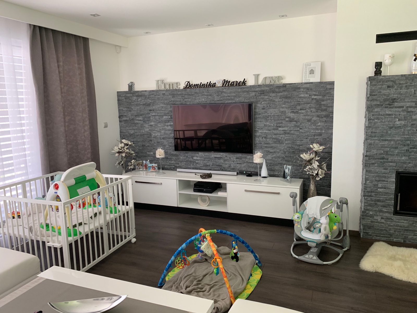 Preto aj ako prve sme začali obývať túto miestnosť a kedže tv je pre nás celkom doležitý prvok, kedže každá mamička vie že jednoducho bez TV je naozaj tažké v domácnosti umyť čo i len pohár od džúsu (🍷). Alebo jednoducho manžel počas voĺna zaplne PLAYSTATION🔊 a GTA alebo NFS (a ja ked deti spia tak Simsa🤣🙄) .