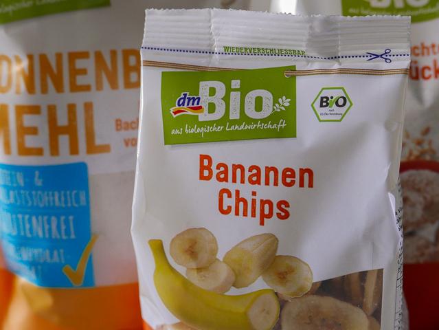 dmBio banánové chipsy – na slnku dozreté, fritované a ľahko osladené banány. Vhodné ako lahodné občerstvenie medzi jedlami alebo na dekorovanie dezertov.