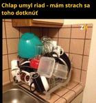 U nás upratujem viac menej JA 🙂 Manžel skôr pomôže tým, že vezme krpca von. No keď umýva riad, vždy ma opretú hlavičku o vrchnú skrinku kuchynskej linky a umývaniu venuje dlhý čas, ale zas na druhej strane riad je mimoriadne čistý. V tomto je môj manžel pedant.