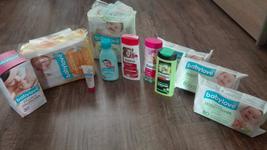Denkmit praci prasok,veci do umyvacky.Balea sampony a sprchove gely a Babylove vlhcene utierky