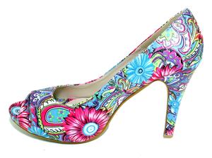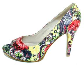 Dámske štýlové lodičky. Otvorená špička, Kvetinový vzor