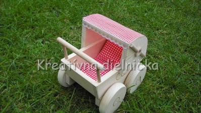 Nádherný kočiarik pre bábiky. Je plne funkčný, kolieska sú otočné - pojazdné. Kočík obsahuje perinky - viď foto - sú v cene.