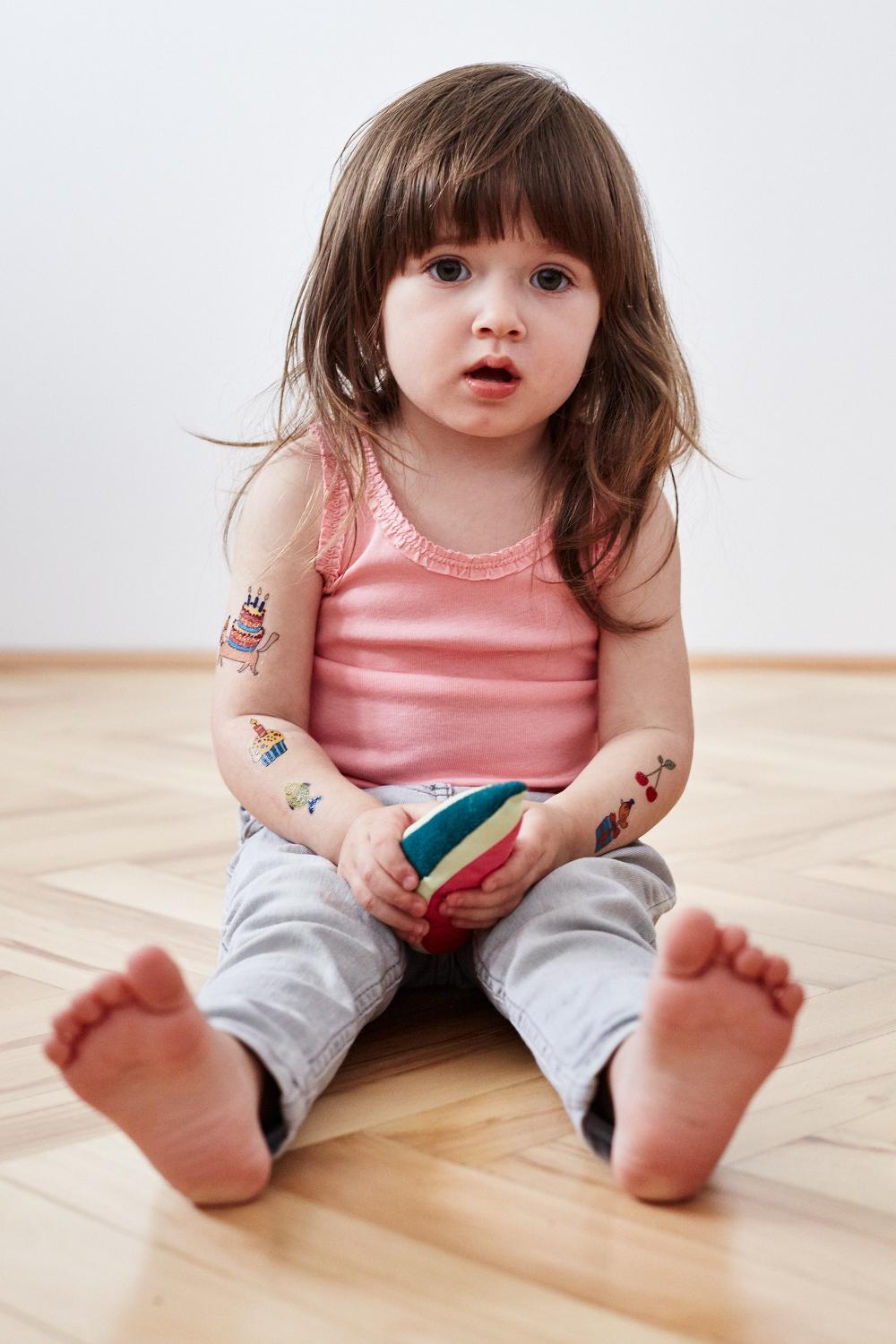 Druhá mini modelka Alma sa celý deň tešila, že sa ide fotiť s tetovačkami, ale ako to už chodí, tesne pred tým ako vyrazili z domu vyhlásila, že ide spať (pol hodiny po svojom obedňajšom spánku). V ateliéri potom už celá potetovaná povedala, že sa nechce fotiť. Jej mamka, ktorá ju sama veľa a rada fotí však vedela, že to nemyslí vážne a nakoniec Alma spolupracovala na úplne profesionálnej úrovni. Určite to poznajú všetci rodičia, tie malé potvorky síce niekedy vyzerajú, že nám robia napriek, ale oni proste žijú tu a teraz a robia to, čo je pre nich najprirodzenejšie.