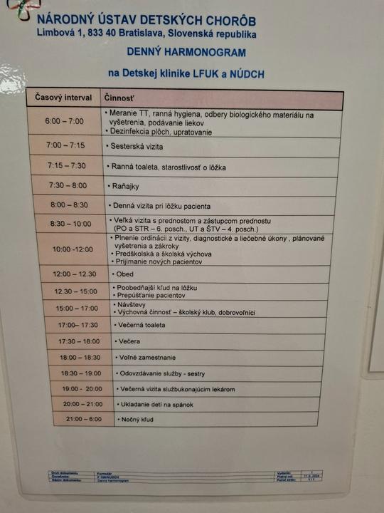 Predčasom som hľadala informácie o tom, čo nás čaká a ako to vyzerá počas hospitalizácie na detskom oddelení na Kramároch. Pripájam aktuálne fotky, aby ste vy, kto to máte pred sebou, videli aktuálny stav. Jedáleň, herňa- krásne zrekonštruované. Hračky v super stave, veľký výber. Nájdete tam aj puzzle, kopec kníh - pre menšie, aj väčšie deti. Izby majú z dvoch strán okná v stenách, ale keď sa všade naraz zhasne, neprekáža to. Po 9tej uz všade kľud, da sa vyspať. Rodič, ktorý je hospitalizovaný s dieťaťom dostane lôžko o 19:30 a 6:30 ho treba z izby odpratat. Odporúčam doniesť si vlastný vankúšik.