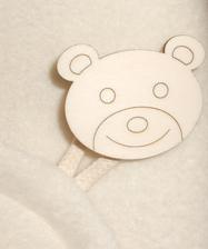 Zavinovačka sa zapína na suchý zips a gombík, kapucňa okolo hlavičky dieťatka vznikne zatiahnutím šnúrky/ gumičky.