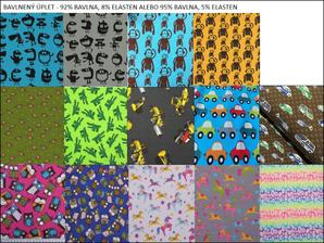 Všetko je vyrobené z kvalitného Bavlneného úpletu (95%bavlna 5%elasten alebo 100% bavlna) alebo Teplákoviny (100% bavlna).