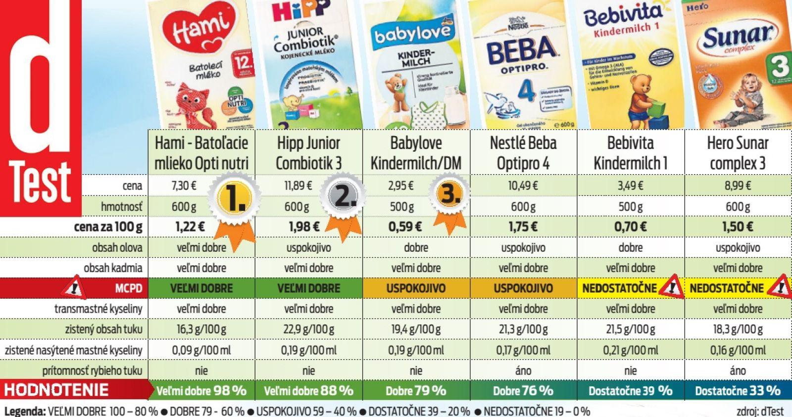 - obsah týchto látok v sušených detských mliekach sa prepočítal na dennú dávku výživy, ktorú odporúča výrobca na obale