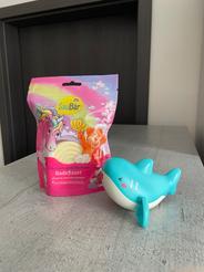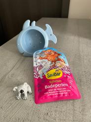 Tak táto loptička (ako ju nazval syn) bola najlepšia vec z balíka. Syn mal takú veľkú prvý krát. Pomaličky sa rozpúšťala a menila farbu vody. Má príjemnú nevtieravú vôňu. Syn sa tešil z celého procesu kúpeľa, farby vody a aj prekvapenia vo vnútri. ☺️