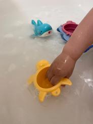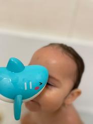 Mojej dcérke robí radosť pri kúpeli. Pekne sa s ňou zakaždým zahrá. Keď sa natiahne, rozkošne pláva k nej. 😊 Na fotke robí dcérka s hračkou “baran, baran buc”.
