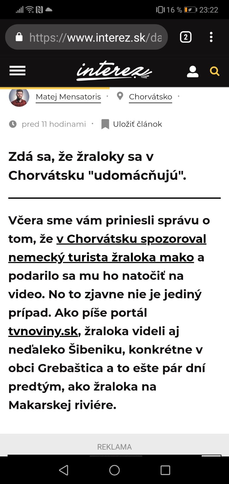 Ja sa bojím tých žralokov v Jadranskom mori 😯 prvý krát ideme na dovolenku a takéto správy. Joj 😃 Upokojte ma.